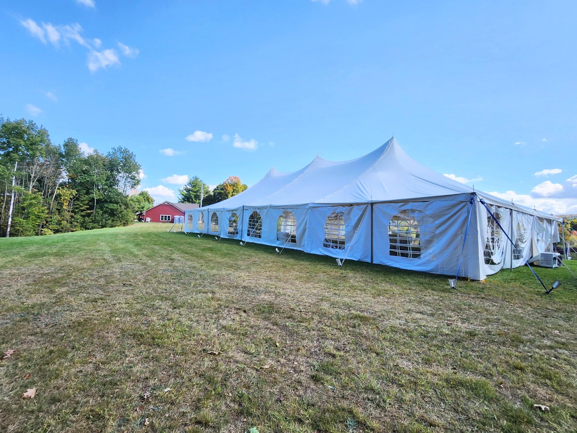 Depending on the amount of guests, seating space, tables, and other factors that play into planning your wedding in Augusta, ME, it can be difficult to determine the right tent size. When deciding on the best wedding tent for your reception or gathering, talk with the knowledgeable staff at The Tent Shop. Most wedding tents are pole style, as they provide a larger cover to accommodate large crowds and seating arrangements.